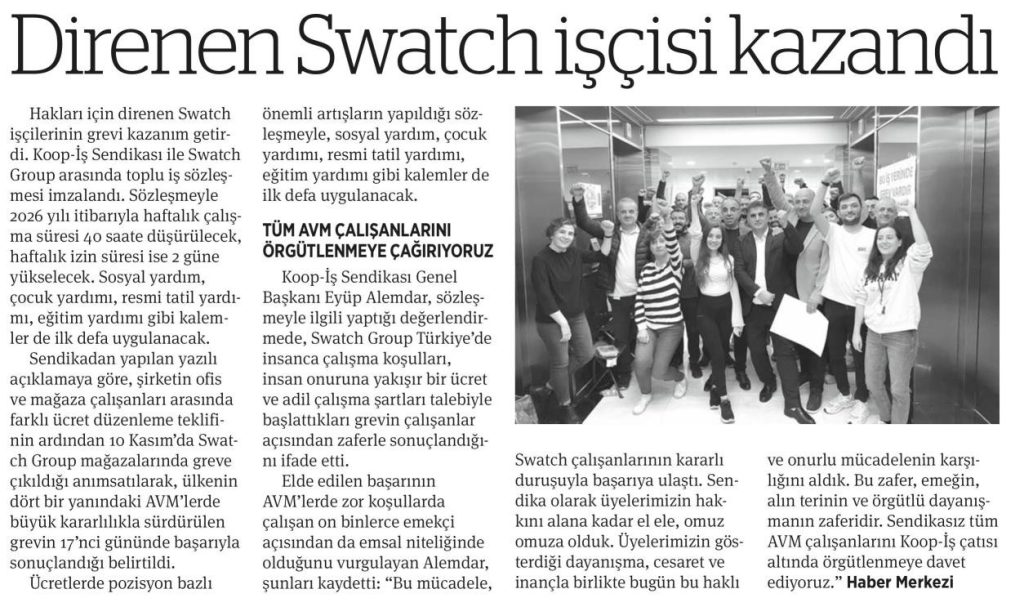 SWATCH GREVİMİZİN ZAFERLE SONUÇLANMASI BASINDA GENİŞ YER BULDU