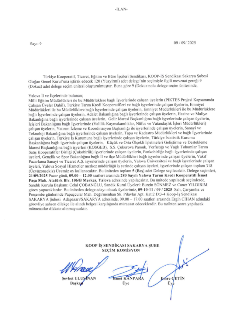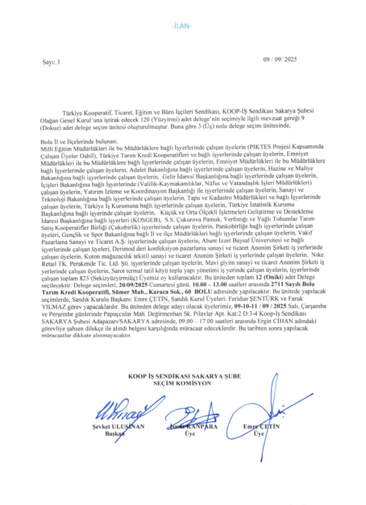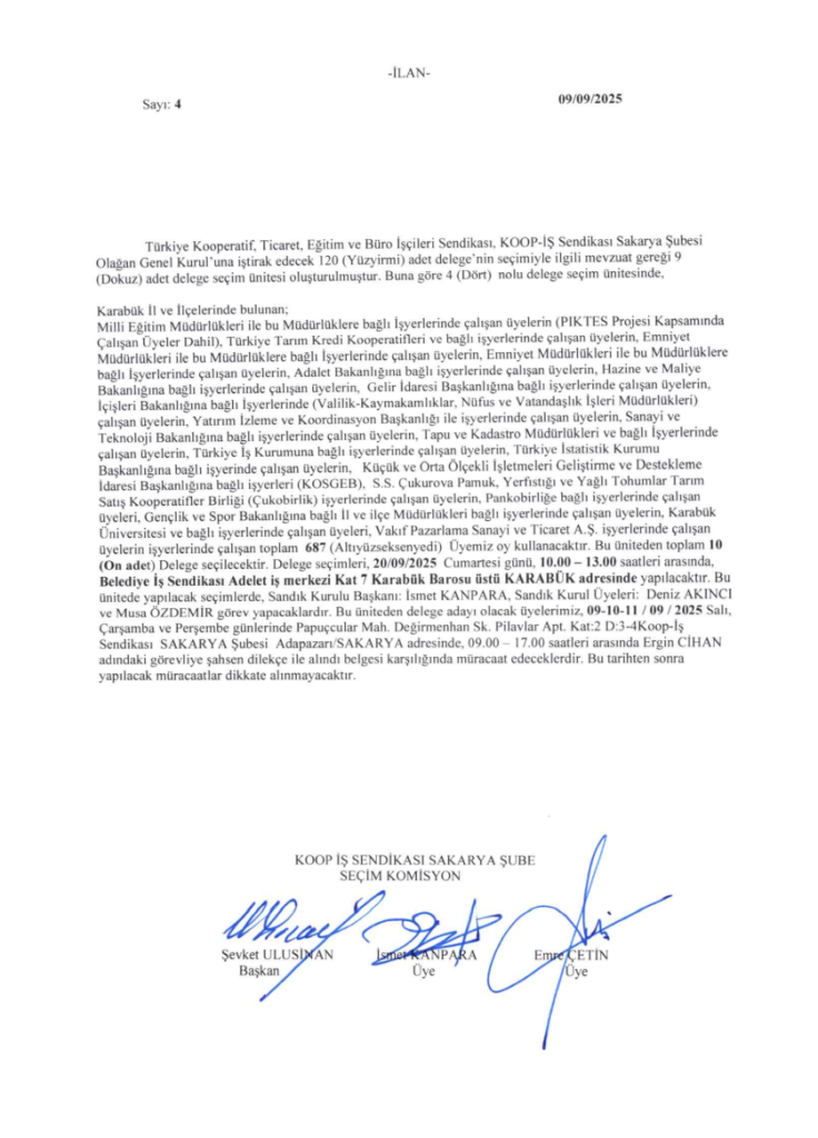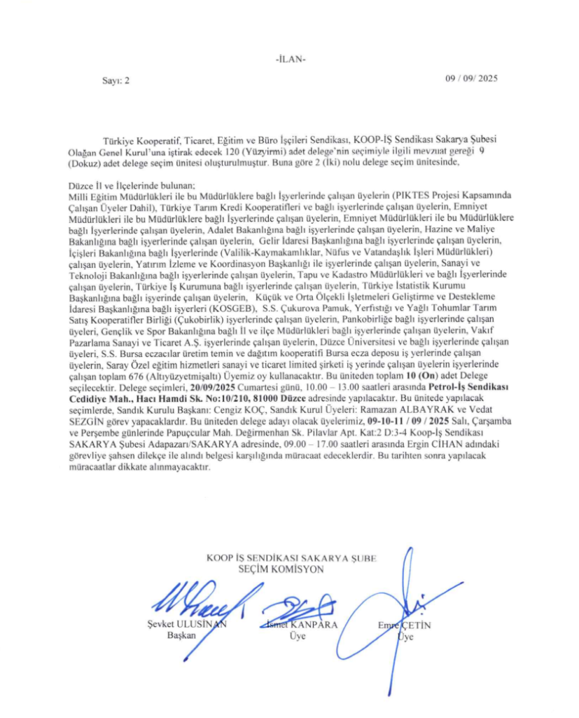DELEGE SEÇİM İLANIDIR