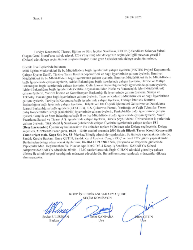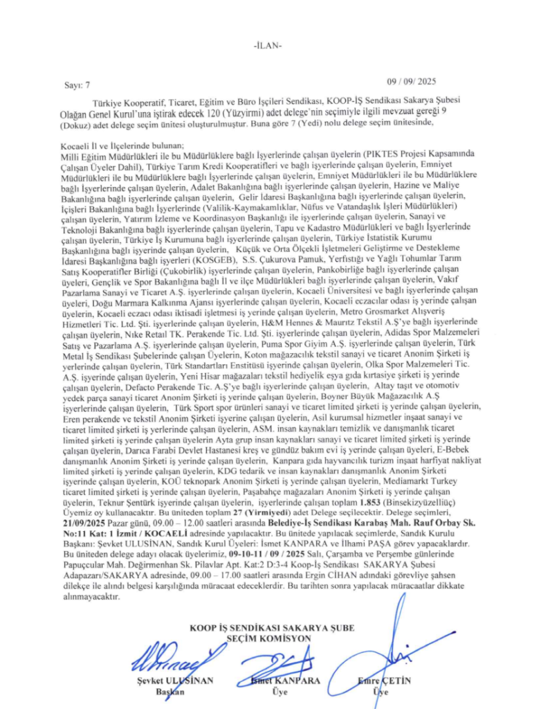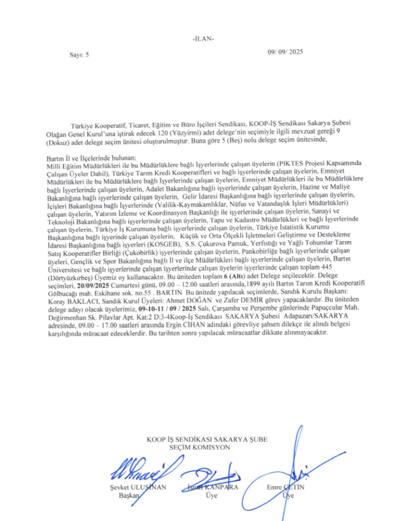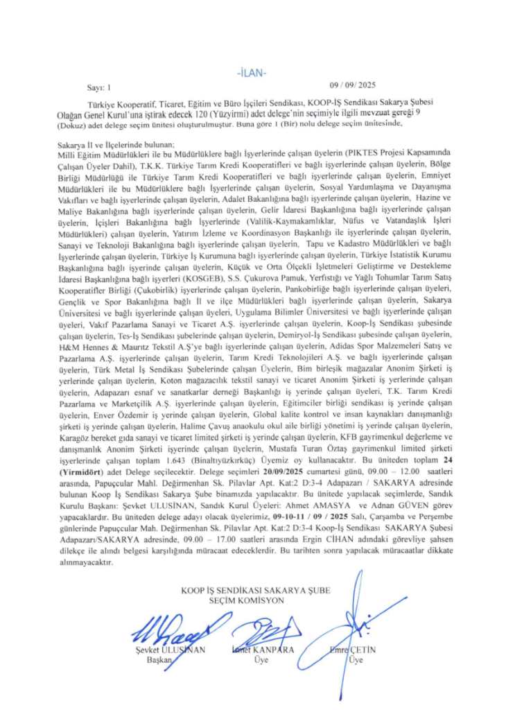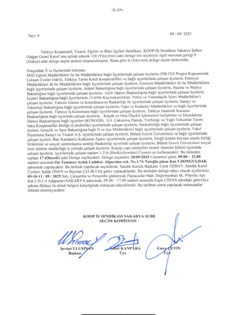 DELEGE SEÇİM İLANIDIR