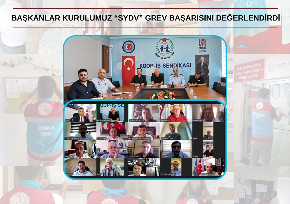- Koop-İş Sendikası Başkanlar Kurulu, 29 Ağustos 2025 Cuma günü Aile ve Sosyal Hizmetler Bakanlığı’na bağlı Sosyal Yardımlaşma ve Dayanışma Vakıflarında, 1003 işyerinde yaklaşık 9 bin üyemizle başlatılan ve 4 gün süren grevin kararlı mücadelemiz ve özellikle Genel Başkanımız Eyüp Alemdar’ın öncülüğünde yürütülen sosyal diyalog sayesinde sendikal tarihimize altın harflerle yazıldığını gururla ifade etmektedir.