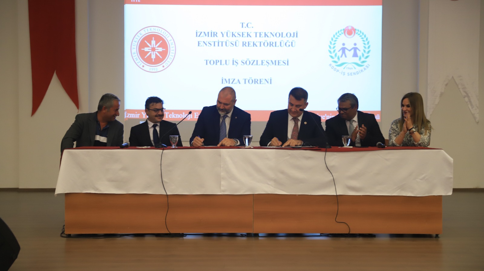 İmza törenine İzmir Yüksek Teknoloji Üniversitesinden Rektör Yrd. Prof. Dr. Yusuf Baran, Genel Sekreter Barış Aramdar ve Sendikamız İzmir 1 nolu Şube Başkanı Umut Başyayla katıldı.