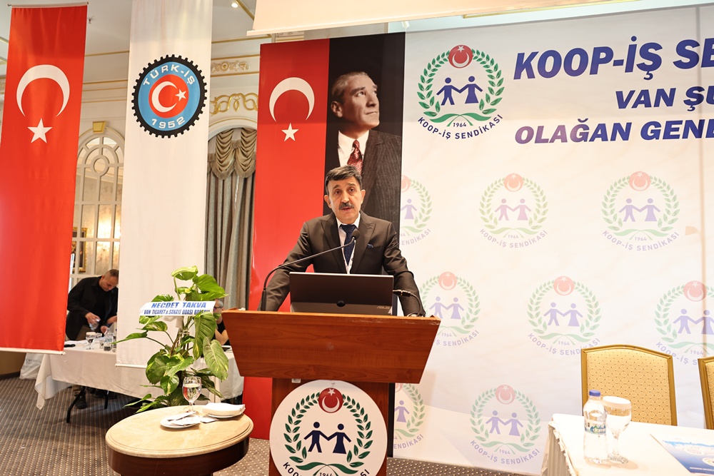 Açılış konuşmasının ardından kürsüye çıkan TÜRK-İŞ Genel Başkan Yardımcısı ve Koop-İş Sendikası Genel Başkanı Eyüp Alemdar, Van Şubesi’nin 4. Olağan Genel Kurulu’nda yaptığı konuşmada, kamu kesimi toplu sözleşme süreci, SYDV grevi, vergi adaleti talebi ve sendikanın büyüme-yatırım hedeflerine ilişkin kapsamlı mesajlar verdi.