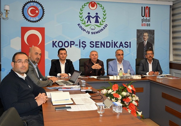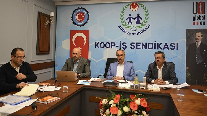 Tarım Kredi Kooperatiflerinden doğan Koop-İş Sendikası, bugün artık çok farklı bir noktaya ulaştı. Başka birçok işyerlerinde örgütlendik, büyüdük, geliştik. 117 bini aşan üye sayımızla, üyesi olduğumuz TÜRK-İŞ içinde 3.,tüm sendikalar içinde 6. büyük sendika olduk. Bugün, kamu kesiminde en çok üyeye sahip sendikayız. Özel sektörde de örgütlenmemiz devam ediyor. Daha önce örgütlü olduğumuz, IKEA, H&M gibi mağazadaki arkadaşlarımızı Metro Grossmarket gibi mağaza zincirini, Nike, Puma, Adidas gibi spor mağazalarını ekledik” dedi.
