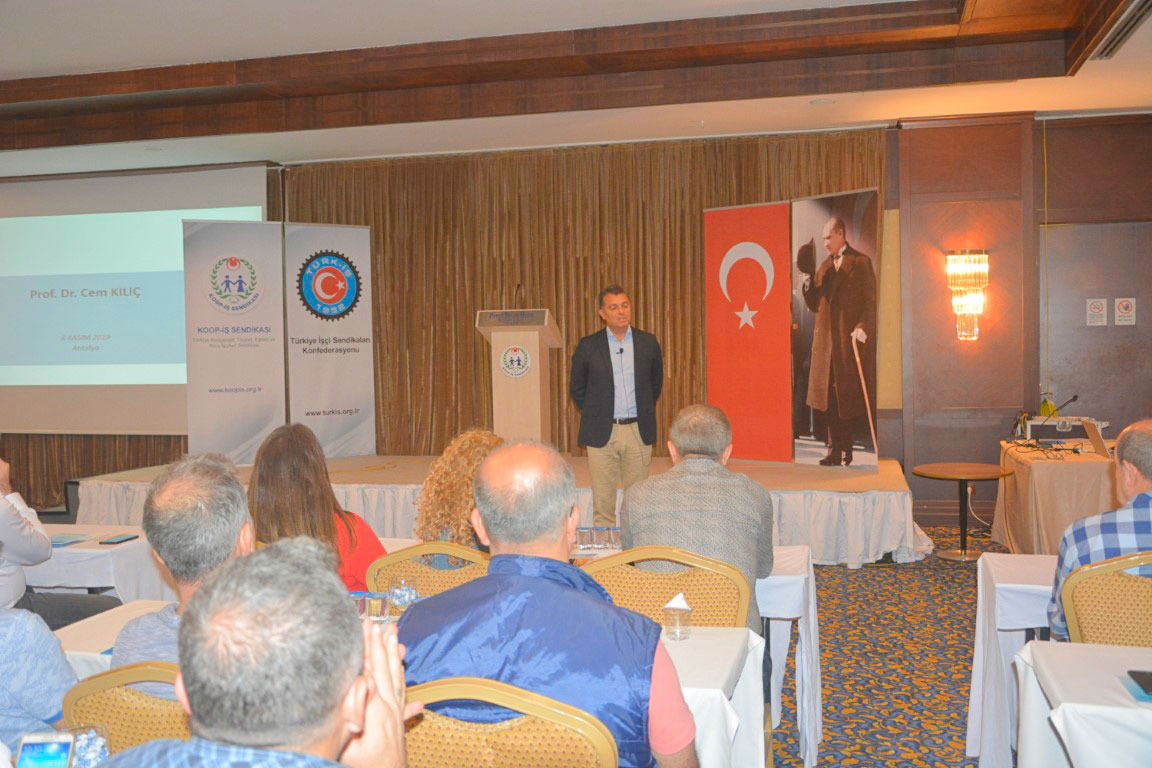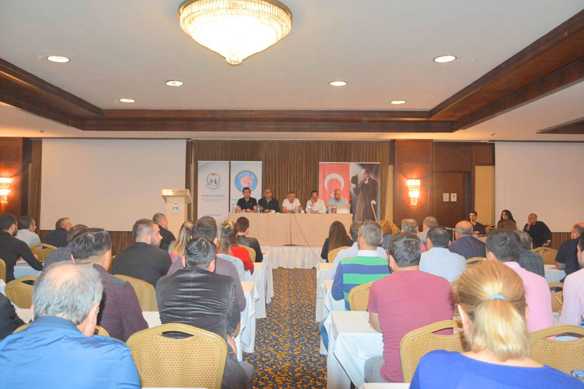 Sendikamız ile Tarım Kredi Kooperatifleri Merkez Birliği arasında imzalanacak yeni dönem toplu iş sözleşmesi için taslak ve eğitim toplantısı, 6-10 Kasım tarihleri arasında, Antalya'da gerçekleştirildi. Toplantıya TÜRK-İŞ Genel Teşkilatlandırma Sekreteri ve Sendikamız Genel Başkanı Eyüp Alemdar, Tarım Kredi Kooperatifleri Merkez Birliği Genel Müdür Yardımcısı Muaz Saka, Tarım Kredi Kooperatifleri Antalya Bölge Birliği Müdürü Yakup Kasal ile Sendikamız Genel Yönetim Kurulu, Şube başkanlarımız ve Tarım Kredi Kooperatifleri Merkez Birliğine bağlı işyerlerinden üye ve temsilcilerimiz katıldı. Toplantıda TÜRK-İŞ Genel Teşkilatlandırma Sekreteri ve Sendikamız Genel Başkanı Eyüp Alemdar, bir konuşma yaptı.
