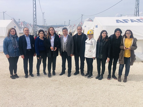 TÜRK-İŞ’e bağlı sendikalarda yönetici düzeyindeki kadın sendikacılardan oluşan TÜRK-İŞ Kadın Heyeti; Hatay, İskenderun, Kahramanmaraş, Elbistan, Afşin, Adıyaman, Malatya, Şanlıurfa, Diyarbakır ve Gaziantep ilindeki depremzedeleri ziyaret ederek geçmiş olsun dileklerini ilettiler.