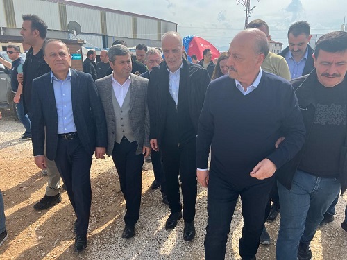 TÜRK-İŞ Genel Başkanı Ergün ATALAY ve Çalışma ve Sosyal Güvenlik Bakanı Prof. Dr. Vedat BİLGİN, Kahramanmaraş merkezli 6 Şubat’taki depremlerden etkilenen Hatay’ın İskenderun ilçesinde incelemelerde bulundu. Ziyaretlerde sendikamız adına Adana Şube Başkanımız Rasim Mart ve Gaziantep Şube Başkanımız ve TÜRK-İŞ il temsilcisi Mehmet Akif Sarıca da hazır bulundu.