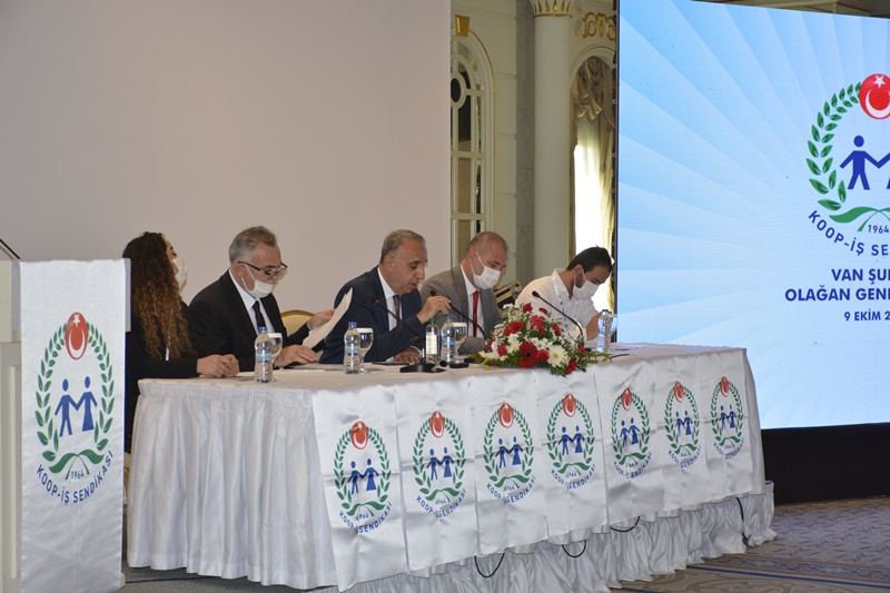 Sendikamız Van Şubesi Olağan Genel Kurulu, 9 Ekim 2021 tarihinde Elite World Hotel'de toplandı. Genel Sekreterimiz Metin Güney'in Divan Başkanlığında yönetilen Genel Kurul'da Divan Başkan Yardımcılıklarına Trabzon Şube Başkanımız Haydar Boğuşli, İzmir Şube Başkanımız Umut Başyayla; Divan Üyeliklerine Nurcan Değer ve Ayhan Karasu seçildi. Genel Mali Sekreterimiz Osman Aksoy'un da katıldığı genel kurulda ayrıca TÜRK-İŞ Van İl Temsilcisi Naif Balandı, Erzurum Şube Başkanımız Tarık Toğrul ve Malatya Şube Başkanımız Necdet Durak yer aldı. Genel Başkanımız Eyüp Alemdar ise rahatsızlığı nedeniyle genel kurula katılamazken, bir video mesajıyla genel kurul katılımcılarına seslendi.