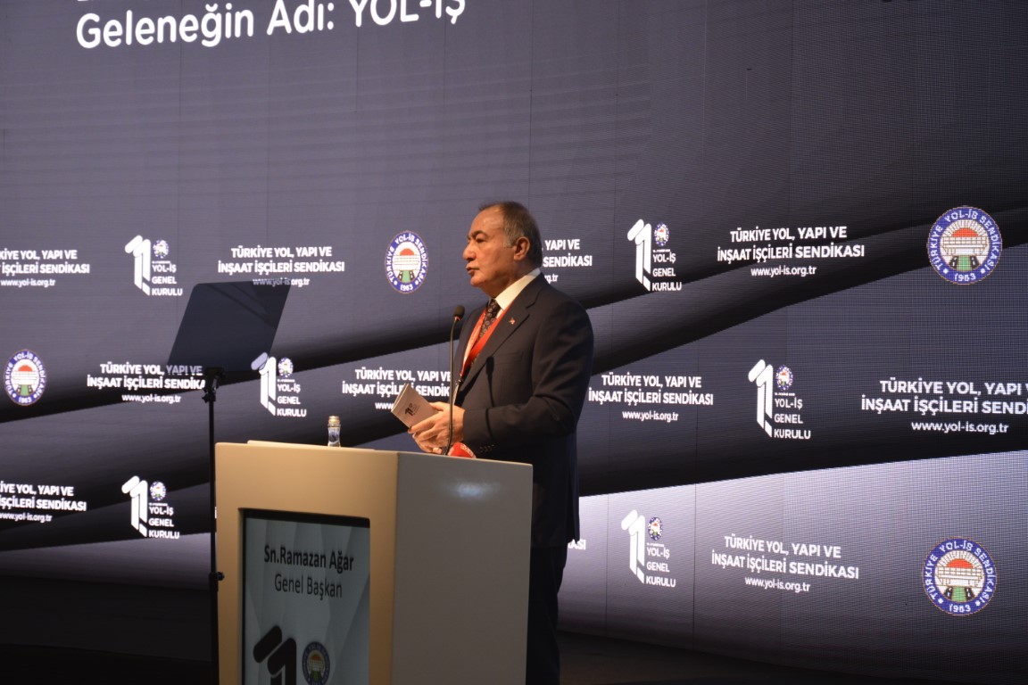 “YOL-İŞ Sendikası, taşeronlaşma politikalarının, özelleştirme uygulamalarının sonucunda bugün belki üye sayısı bakımından eskisi kadar değil ama, gücünden, etkisinden, işkolunun tek ve lider sendikası olmasından hiçbir şey kaybetmedi. Aksine etki bakımından çok daha güçlendi. Bunun son örneğini de karayollarında çalışan taşeron işçilerin kadroya alınmaları sürecinde yaşadık. Sayın Ağar’ın da konuşmasında gururla söz ettiği bu başarı, Ülkemizde taşeron sorununun çözümü için büyük bir adım oldu. TÜRK-İŞ’imizin öncülüğünde, YOL-İŞ’in verdiği büyük mücadeleyle önce karayollarındaki taşeron işçiler, sonra da kamuda taşeron şirketlerde çalışan işçiler kadrolarına kavuştu. YOL-İŞ Sendikamız, ülkemiz sendikal hareketinin son yıllarda kazandığı bu büyük başarıyla ne kadar övünse azdır. Bu nedenle değerli Genel Başkanınız Ramazan Ağar ve çalışma arkadaşları bu başarılarıyla her zaman anılacaklardır. Ben, başta TÜRK-İŞ’imizin Genel Başkanı Sayın Ergün Atalay ve sayın Ağar olmak üzere bu başarının mimarlarını yürekten tebrik ediyorum. Ülkemiz tarihine geçen bu başarıdan dolayı tüm YOL-İŞ ailesini kutluyorum.”