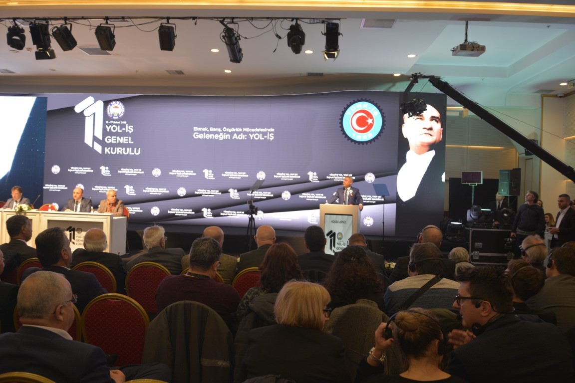 Yol-İş Genel Kurulu’na Divan Başkanlığı yapan TÜRK-İŞ Genel Teşkilatlandırma Sekreteri ve Sendikamız Genel Başkanı Eyüp Alemdar: “Sorunlarımızı çözmek için Örgütlü olmaktan, büyümekten, güçlenmekten başka çaremiz yok. Örgütlenme yalnızca sayısal bir büyüklük değildir. Daha paylaşımcı, daha adil, daha demokratik bir toplum için gerekliliktir. Çünkü biz ne kadar örgütlü ve güçlü olursak, Demokrasimiz de o oranda güçlü olur. Böylece hak ve özgürlüklerimiz de O oranda gelişir.”