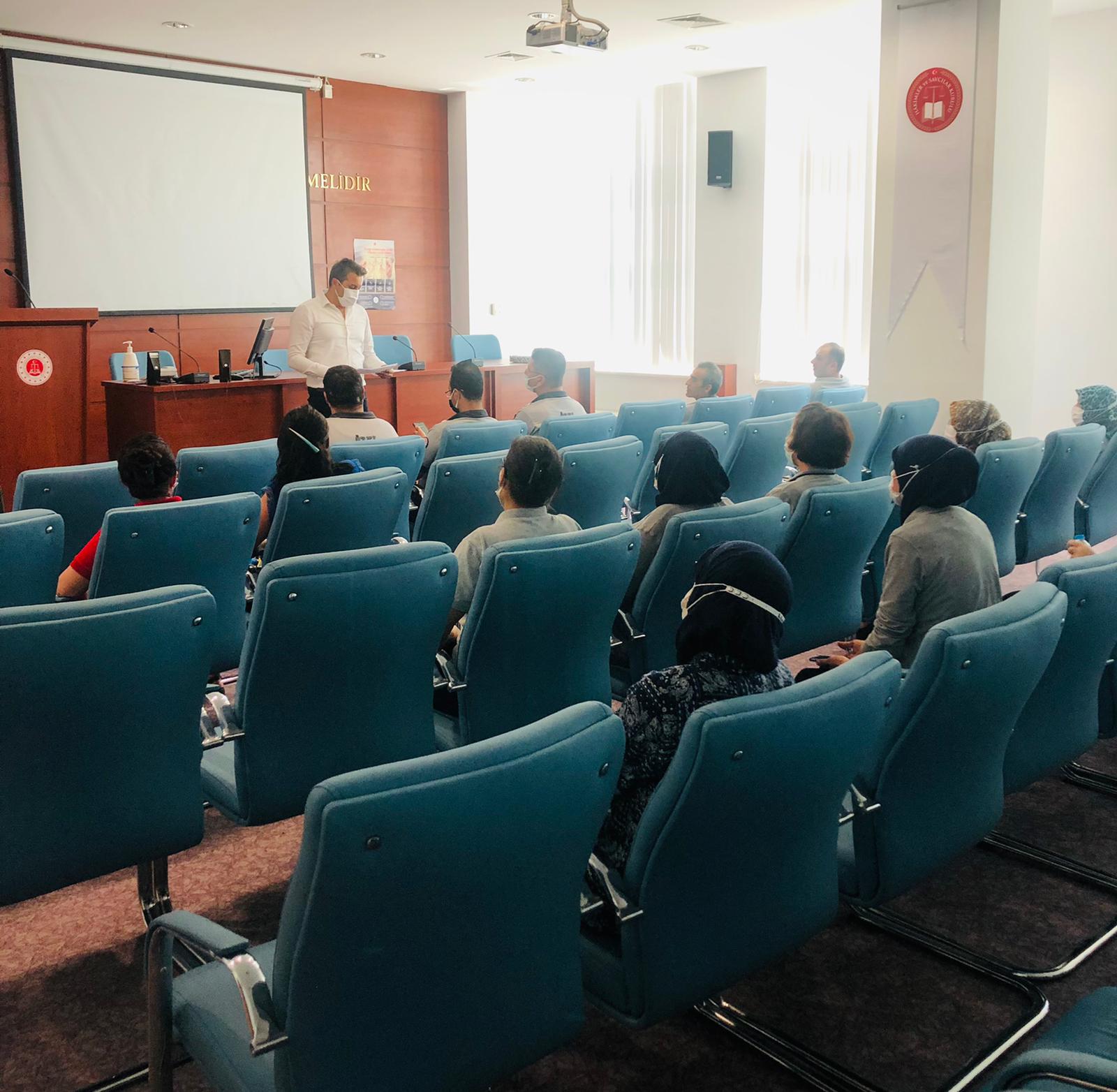 Antalya Adliyesinde gerçekleşen toplantıda, adliyede görevli üyelerimize detaylı bilgi veren Başkan Şahin, üyelerimizin sorularını da cevapladı.