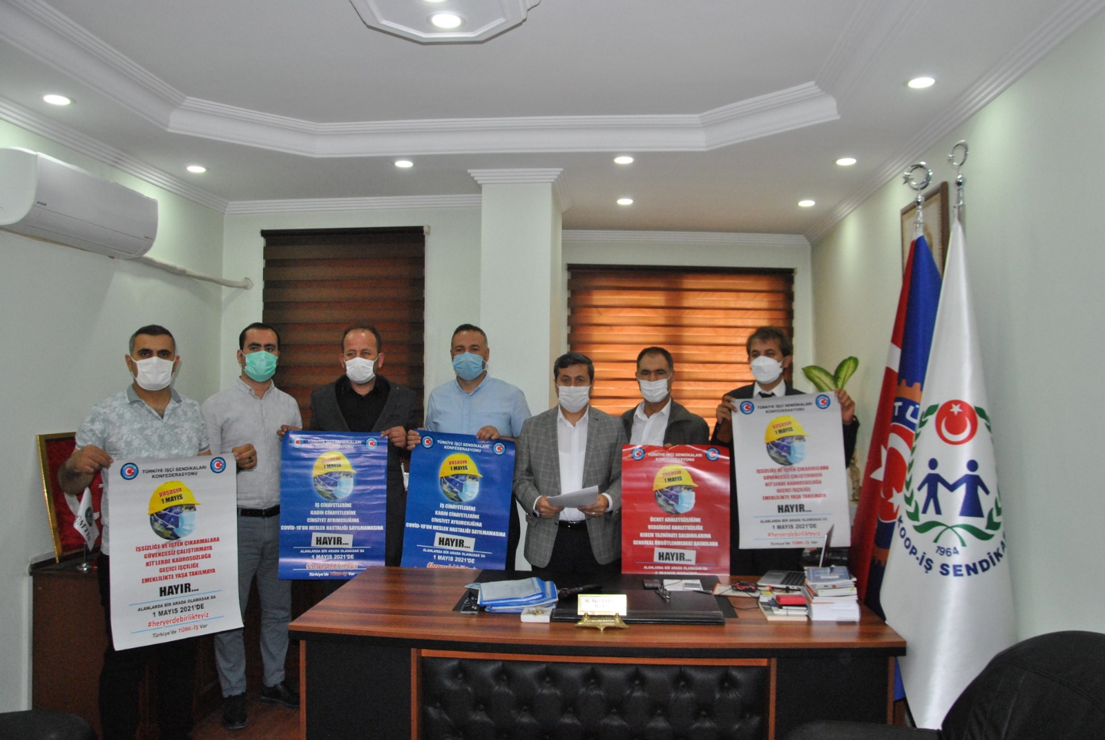 Başkan Sarıca, şube ofisimizde yaptığı açıklamada; bu sene "Alanlarda bir arada olamasak da" sloganı ile kutlanacak 1 Mayıs Bayramını meydanlarda şarkılarla, türküllerle kutlamanın özlemini yaşıyoruz dedi.