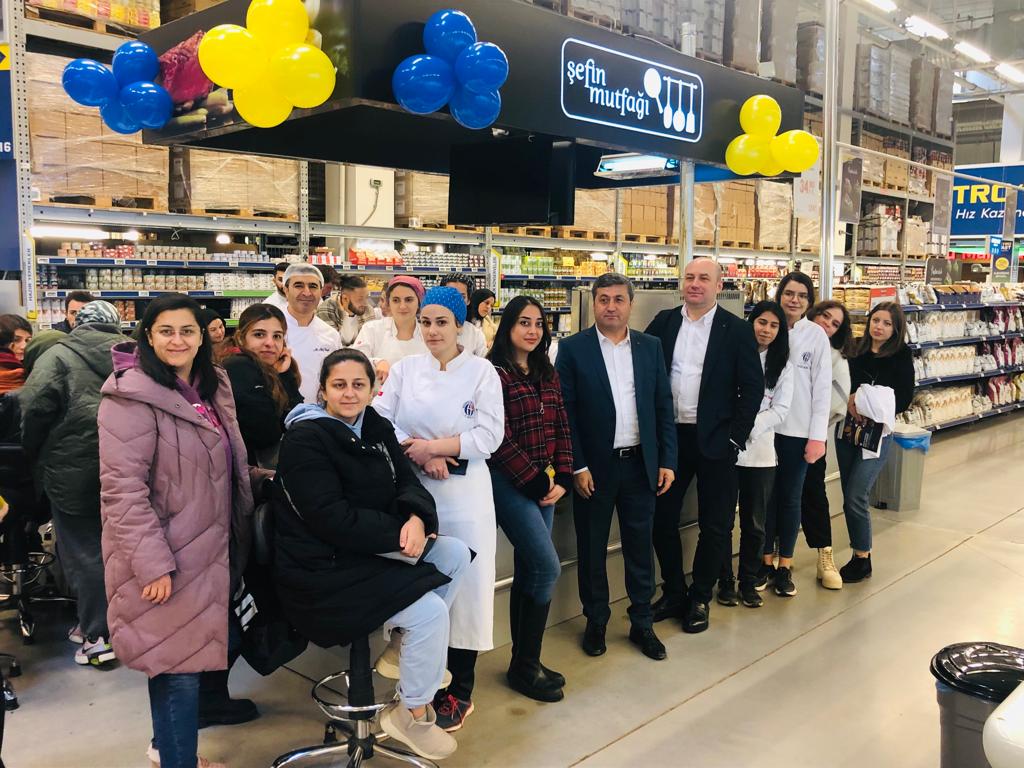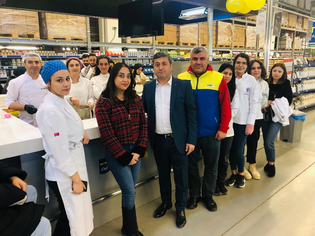 Gaziantep Üniversitesi Gastronomi bölümü Öğrencilerinin, Metro Gıda bölümünde Uygulamalı eğitim çalışmalarına da eşlik eden Sarıca, "yoğun bir tempoyla çalışan tüm perakende çalışanlarının #12AralıkDünyaMağazacılarGünü’nü kutluyorum. sendikam Koop-İş, haklarınızı her platformda savunmaya, her zaman yanınızda olmaya devam edecektir" şeklinde konuştu.