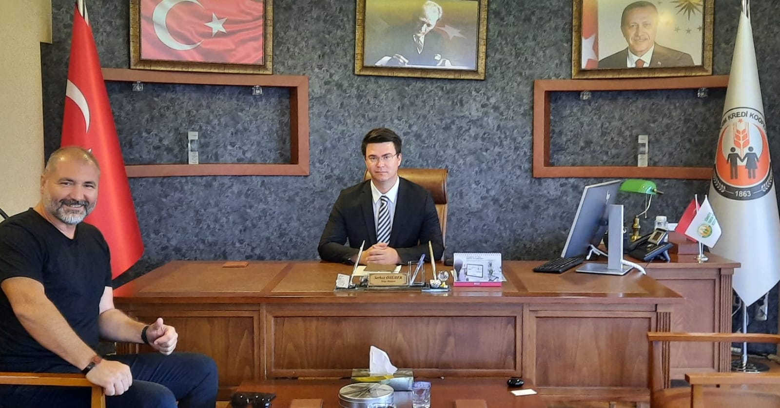 Sendikamız İzmir Şube Başkanı Ümit Başyayla, Tarım Kredi Kooperatifi İzmir Bölge Müdürlüğü görevine atanan Serhat Özübek'i ziyaret ederek yeni görevinde başarı dileklerinde bulundu.