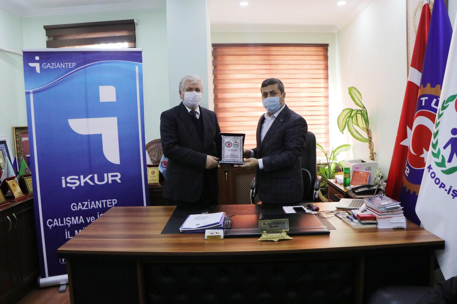 Sendikamız Gaziantep Şube Başkanı Mehmet Akif Sarıca, İşkur Müdürü Siraç Ekin'e başarılı çalışmaları ve istihdama katkılarından dolayı teşekkür plaketi verdi.
