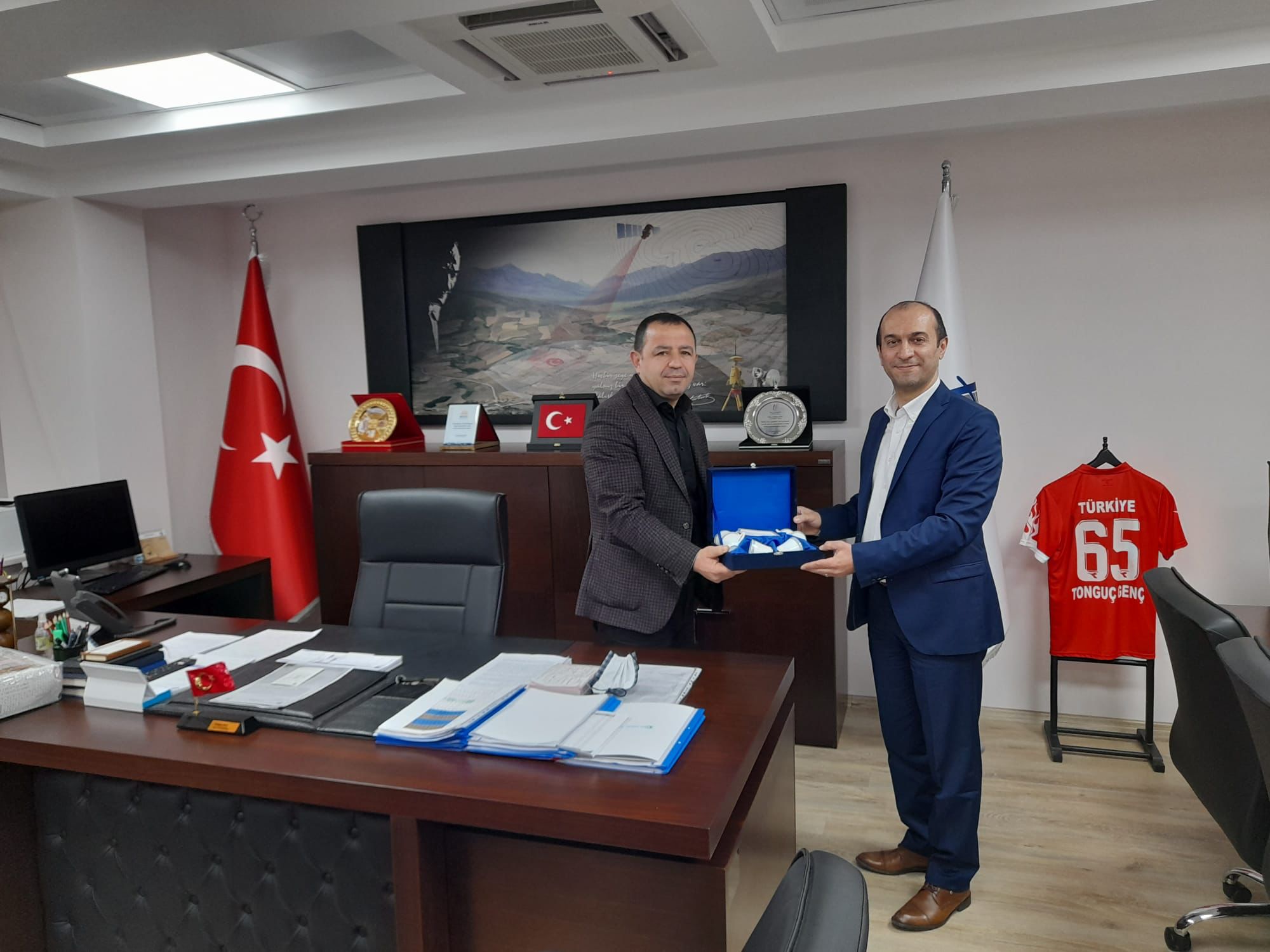 Ankara 2 Nolu Şube Başkanı Soner Berk, Ankara Kadastro İl Müdürü Tonguç Genç'i ziyaret etti.