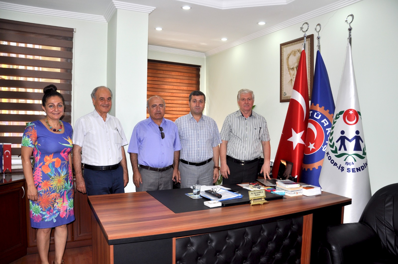 Gaziantep İşkur İl Müdürü Sıraç Ekin, Şube Müdürü Özlem Ergün, TEİAŞ 12. Bölge Müdüru Abdullah İnanç ve Gaziantep Üniversitesi Öğretim Üyesi Muhammed Emin Mustafa, Gaziantep şube başkanı Mehmet Akif Sarıca'yı ziyaret etti.