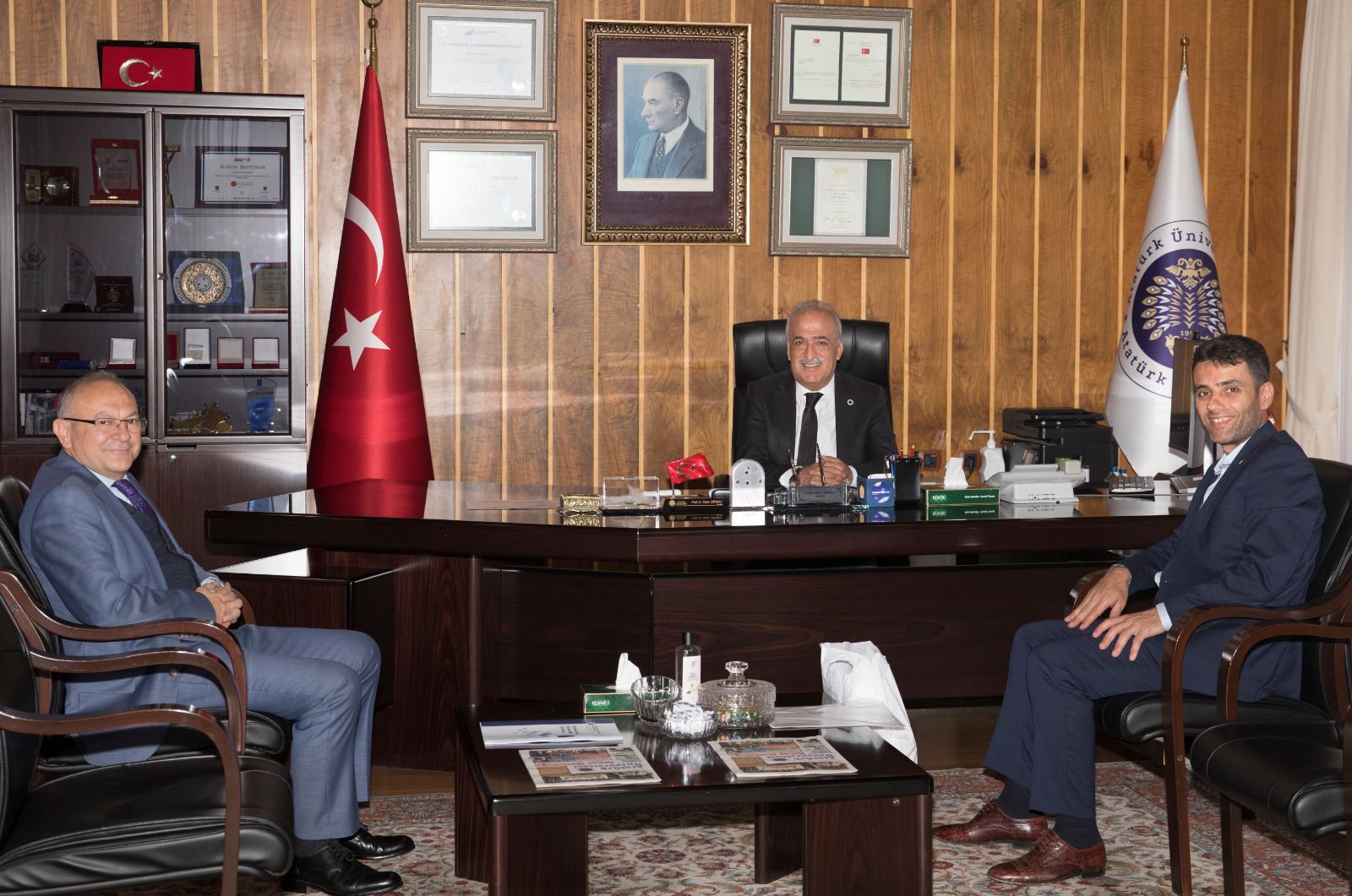 Sendikamız Erzurum Şube Başkanı Tarık Toğrul, Atatürk Üniversitesi Rektörü Prof. Dr. Ömer Çolaklı'yı ziyaret etti.