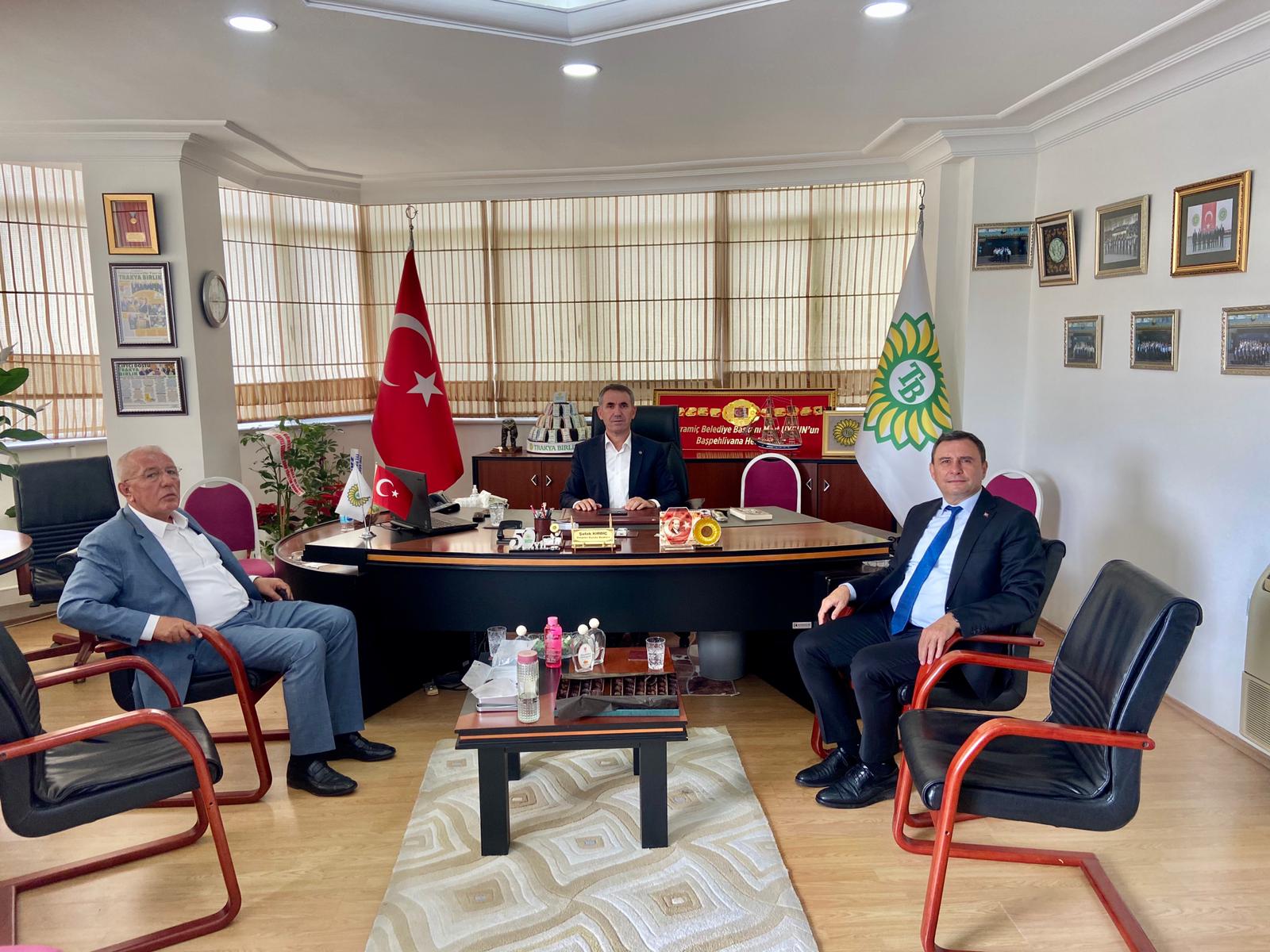 Sendikamız Tekirdağ Şube Başkanı Ziya Nur Üzmez, Trakya Birlik Yönetim Kurulu başkanı Şafak Kırbiç'i makamında ziyaret etti.