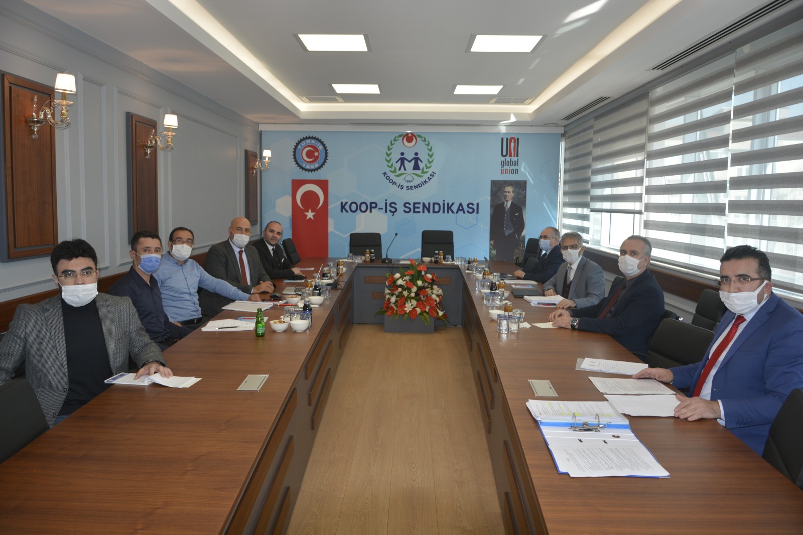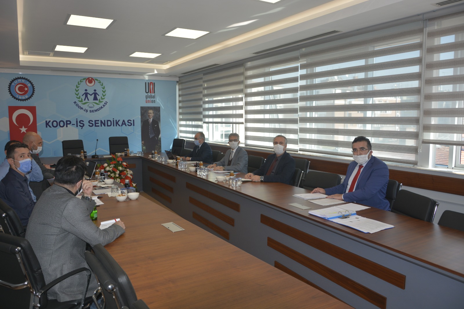 Sendikamız Genel Merkez binasında gerçekleşen görüşmeye Yıldırım Beyazıt Üniversitesini temsilen Doç. Dr. Akın Ünal, Strateji Geliştirme Daire Başkanı Osman Kuruçay, İdari ve Mali İşler Daire Başkanı Fatih Bağçeci, İdari ve Mali İşler Şube Müdürü Fatih Çiçek, Sendikamız Ankara 1 Nolu Şube Başkanı Yücel Yıldırım, Genel Sekreter Yardımcısı Aytuğ Balaman, TİS Uzmanı Sezgin Bilgin, Hukuk Müşaviri Av.Veysel Özaydın ve işyeri temsilcisi İlker Taşdelen katıldı.