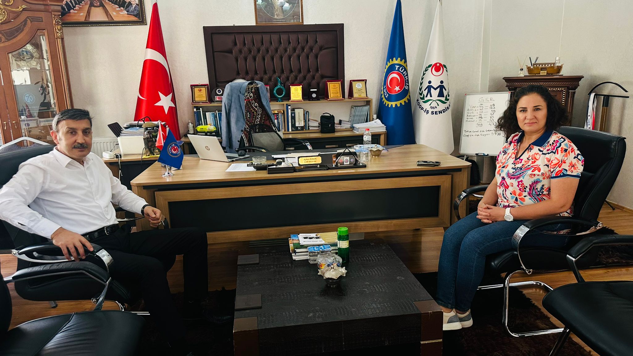 Van Tarım Kredi Kooperatif İl Müdürü ve Sendika İşyeri Baş Temsilcimiz Mehtap Aydınoğlu, sendikamız Van Şube Başkanı Ayhan Özbek’i  ziyaret etti. Ziyarette sendikal çalışmalar ve kurumlar arası iş birliği üzerine görüş alışverişinde bulunuldu